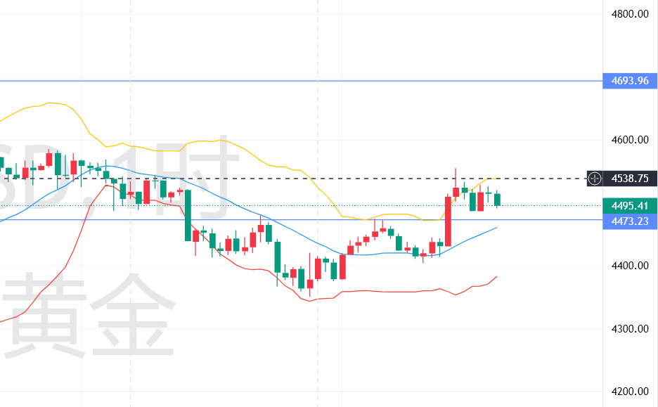小时级别:本周小时线多次出现快速涨跌切换,单日波动幅度超100美元,体现出短期资金博弈的激烈程度;本周最后两个交易日 ,小时线震荡区间逐步收窄,波动幅度降至50美元以内,显示短期市场情绪趋于平稳 ,多空双方暂时观望。技术指标来看 ,小时线MACD指标反复出现金叉 、死叉切换,动能柱持续处于低位震荡,表明短期趋势性较弱 ,以震荡整理为主;RSI指标在30-70区间内反复波动,未出现明显超买超卖信号,契合小时线震荡格局。支撑与阻力方面 ,小时线短期支撑位为4473(本周收盘附近,同时也是近期震荡平台下沿),上方阻力位为4538附近 。整体来看 ,小时线级别暂无明确单边趋势,短期仍以区间震荡为主,需重点关注突发消息面带来的波动 。